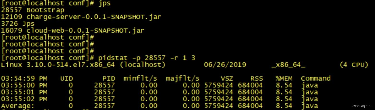 我们可以通过相关命令(例如 ps 或 jps)查询到相关进程 ID,再运行以下命令来监测该进程的内存使用情况: