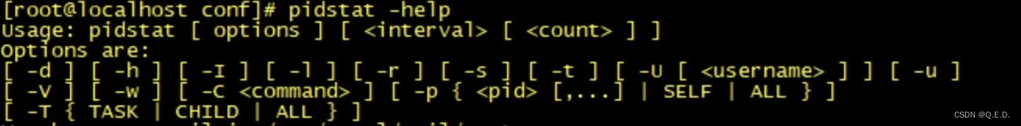 通过 pidstat -help 命令,我们可以查看到有以下几个常用的参数来监测线程的性能: