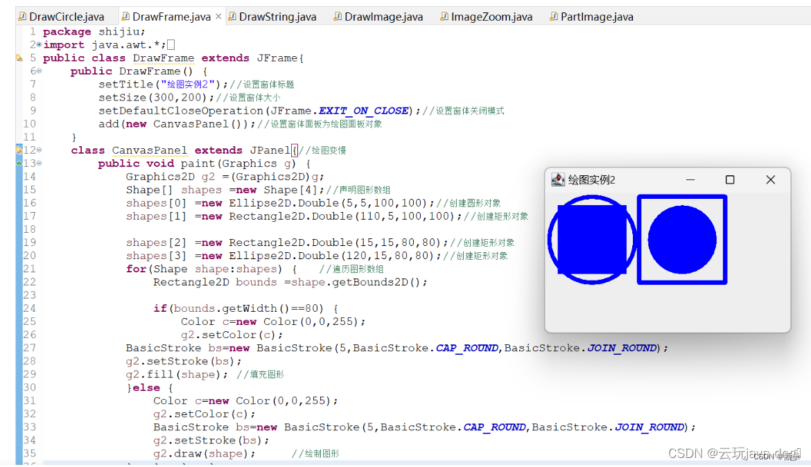 Graphics2D 是推荐使用的绘图类,但是程序设计中提供的绘图对象大多是 Graphics 类的实例对这时应该使用强制类型转换将其转换为 Graphics2D 类型