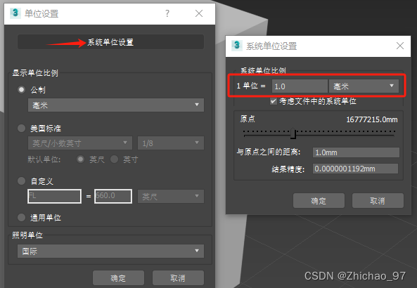 在3dsmax中仅仅修改显示单位是不行的,需要在系统单位设置中设置 1单位=1毫米,这样模型的1毫米也就是真实的1毫米(之前默认的系统单位是1单位=1英寸)