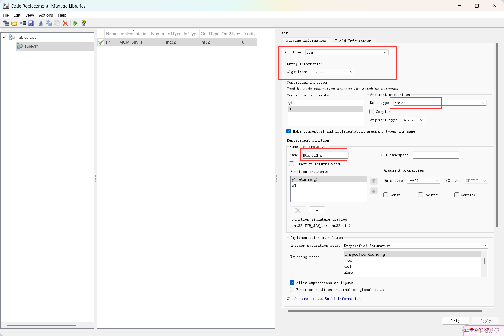 下图是一个调用硬件Cordic实现Sin函数的计算,目的是在仿真结束后生成的Sin函数用的是这部分手写代码。不用查表法或者软件Cordic来计算,提升软件效率。这里就需要用到Matlab的Code Replacement Tool。