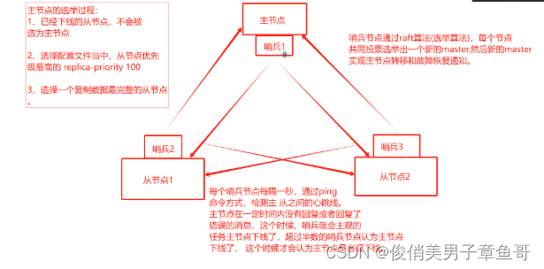 哨兵节点会通过redis自带的raft算法(选举算法),每个节点共同投票,选举出一个新的master。