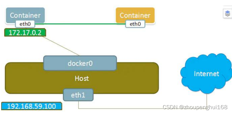 结论:默认情况同一台主机上面的容器是可以互相通信的,默认情况同一台主机上面的容器和主机之间是可以互相通信的