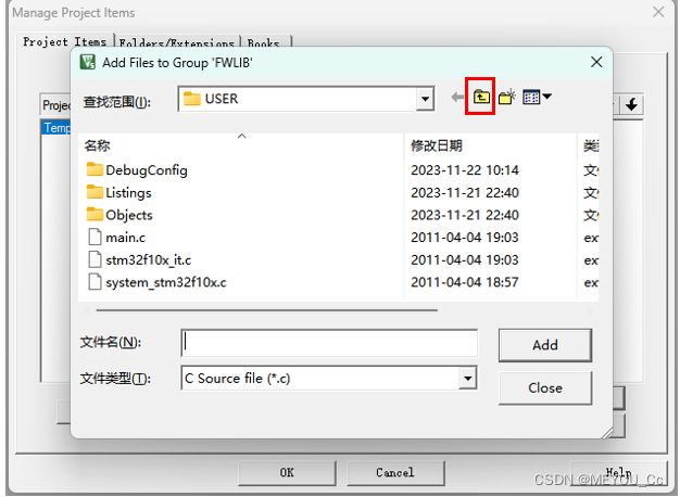 STM32F10x_FWLib/src 下面,将里面所有的文件选中(Ctrl+A),然后点击 Add,然后 Close。