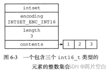 现在有一个INTSET_ENC_INT16编码的整数集合,集合中包含三个int16_t类型的元素。纵隔占16*3=48位。