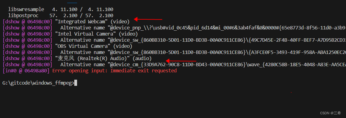 ffmpeg 查看本地摄像头和麦克风设备名称