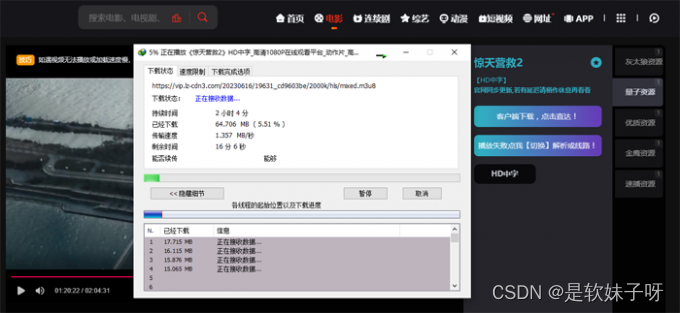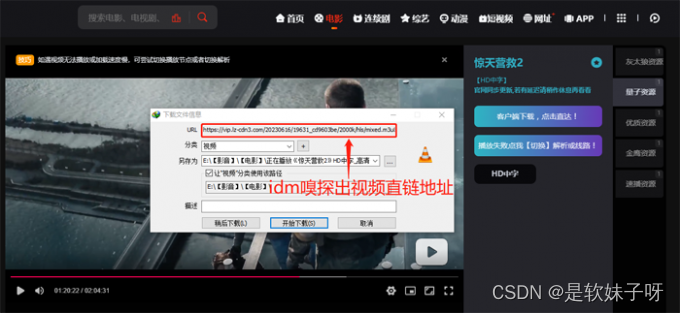 以idm下载网页视频为例。由于在线视频是存储在网站服务器上的,而idm的嗅探功能,可以直接嗅探出网页视频的直链地址(在服务器中的具体位置)。因此,idm几乎可以胜任所有的网页资源下载场景。