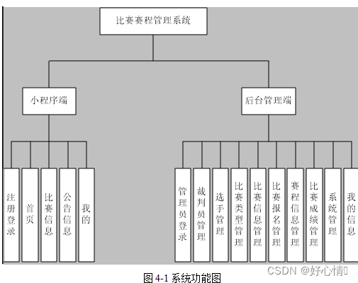 在全面健身的倡导下通过各级赛事的举办完成体育人才的选拔,当由于缺乏信息化的管理手段而只能通过人工完成比赛报名、赛程制定及成绩记录等流程的管理,因此常常因意外而导致比赛赛程管理不善、成绩不理想等问题出现。为了帮助比赛组织者优化赛程管理流程而以当前主流的移动互联网技术设计一款比赛赛程管理系统。该系统采用B/S模式的设计思路而将前端(微信小程序+Vue.js)和后端(SpringBoot框架+MyBatis框架+MySQL数据库)整合于一体而为参赛选手、裁判员和管理员提供符合角色身份的信息服务。参赛选手可在小程序前端完成注册与登录后查看比赛信息并完成报名、查看比赛成绩等;裁判员登录后端可实现赛程的制定及成绩录入等工作来保证比赛赛程的公正性;管理员则登录后端可通过裁判员、选手、比赛信息、比赛报名、赛程信息、比赛成绩及系统管理等诸多管理功能的实现来支持比赛赛程的圆满完成。