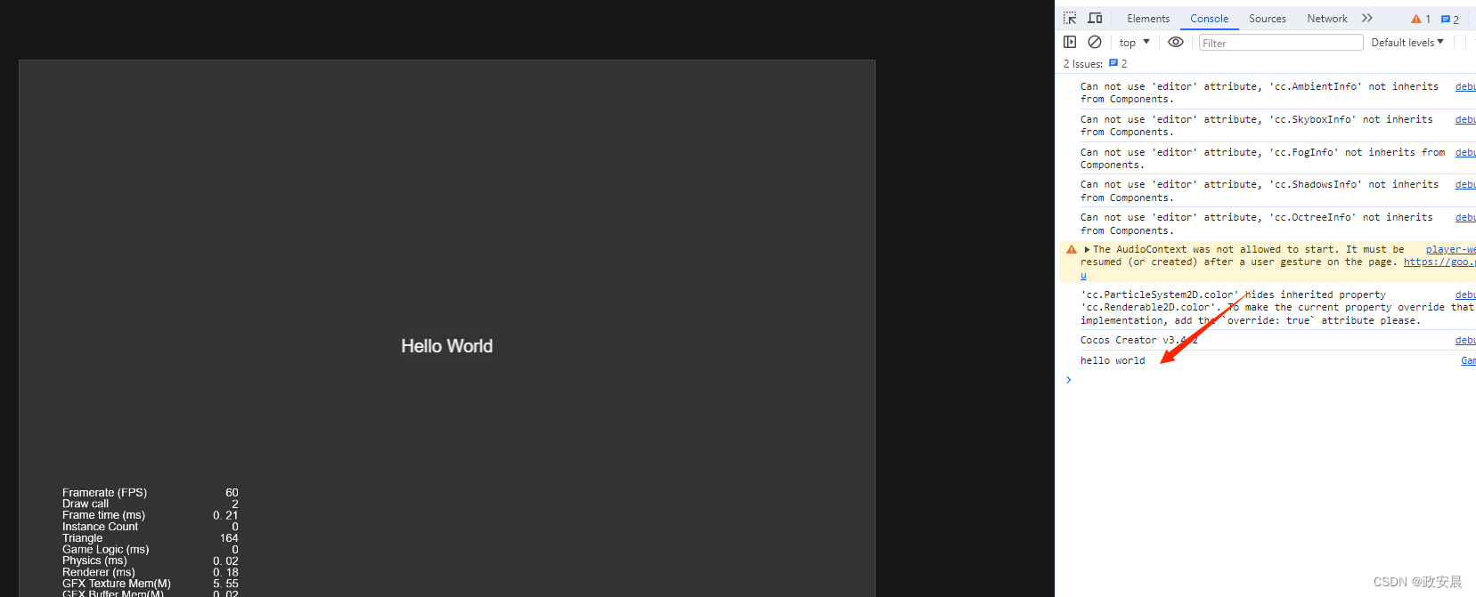 因此,当我们在预览运行Game场景时,脚本中添加的调试输出语句【hello world】也将会被触发。