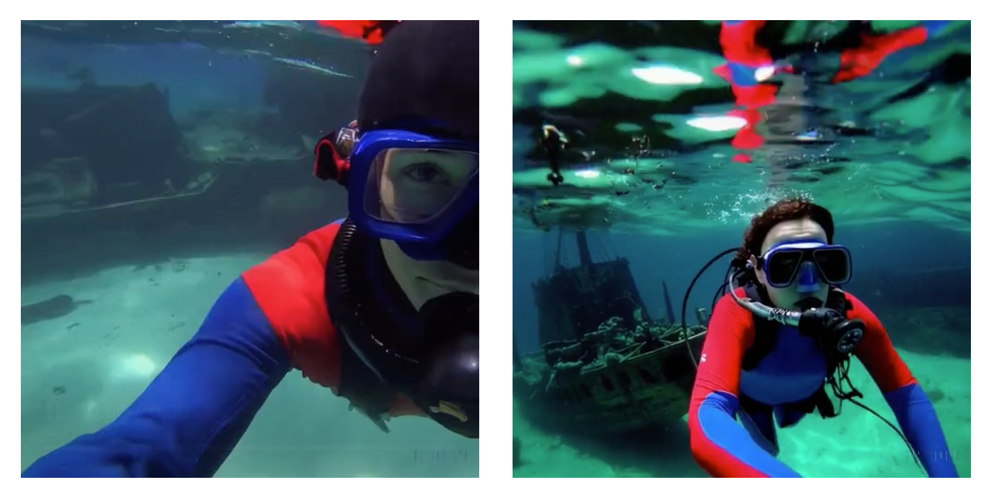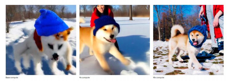 在这项工作中,我们发现扩散变压器在视频模型中也能有效地扩展。在下面,下面,我们展示了在训练过程中,使用固定种子和输入的视频样本的比较。随着训练计算量的增加,样本质量显著提高。