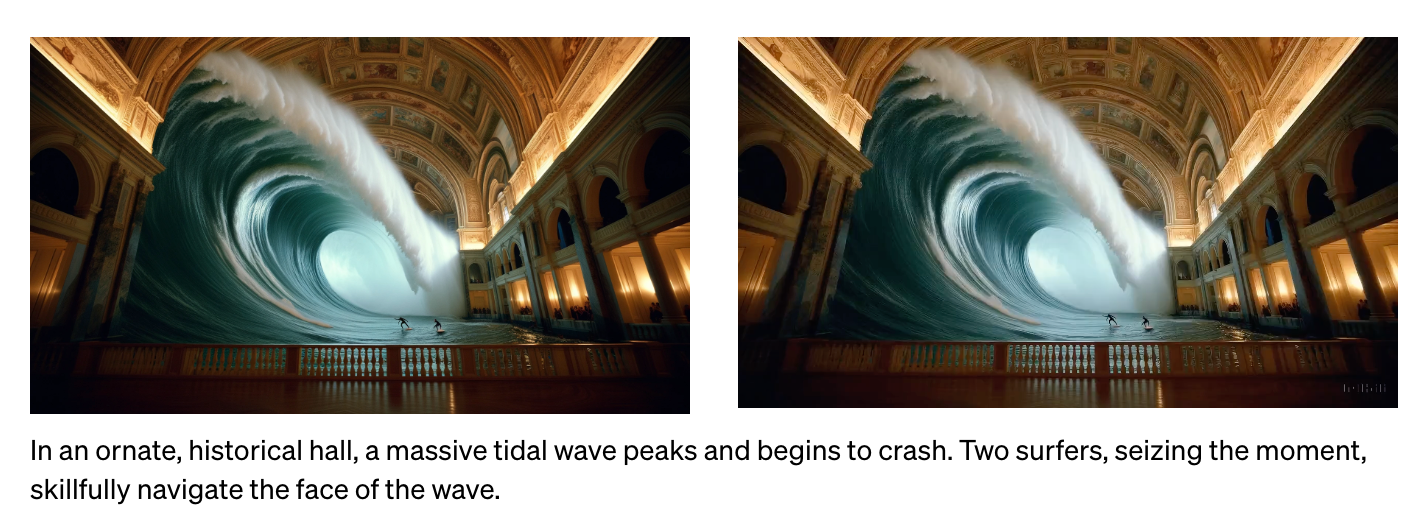 Sora 能够生成基于 DALL·E 2 和 DALL·E 3 图像的视频,只需提供图像和提示作为输入。下面我们展示了基于这些图像生成的示例视频。