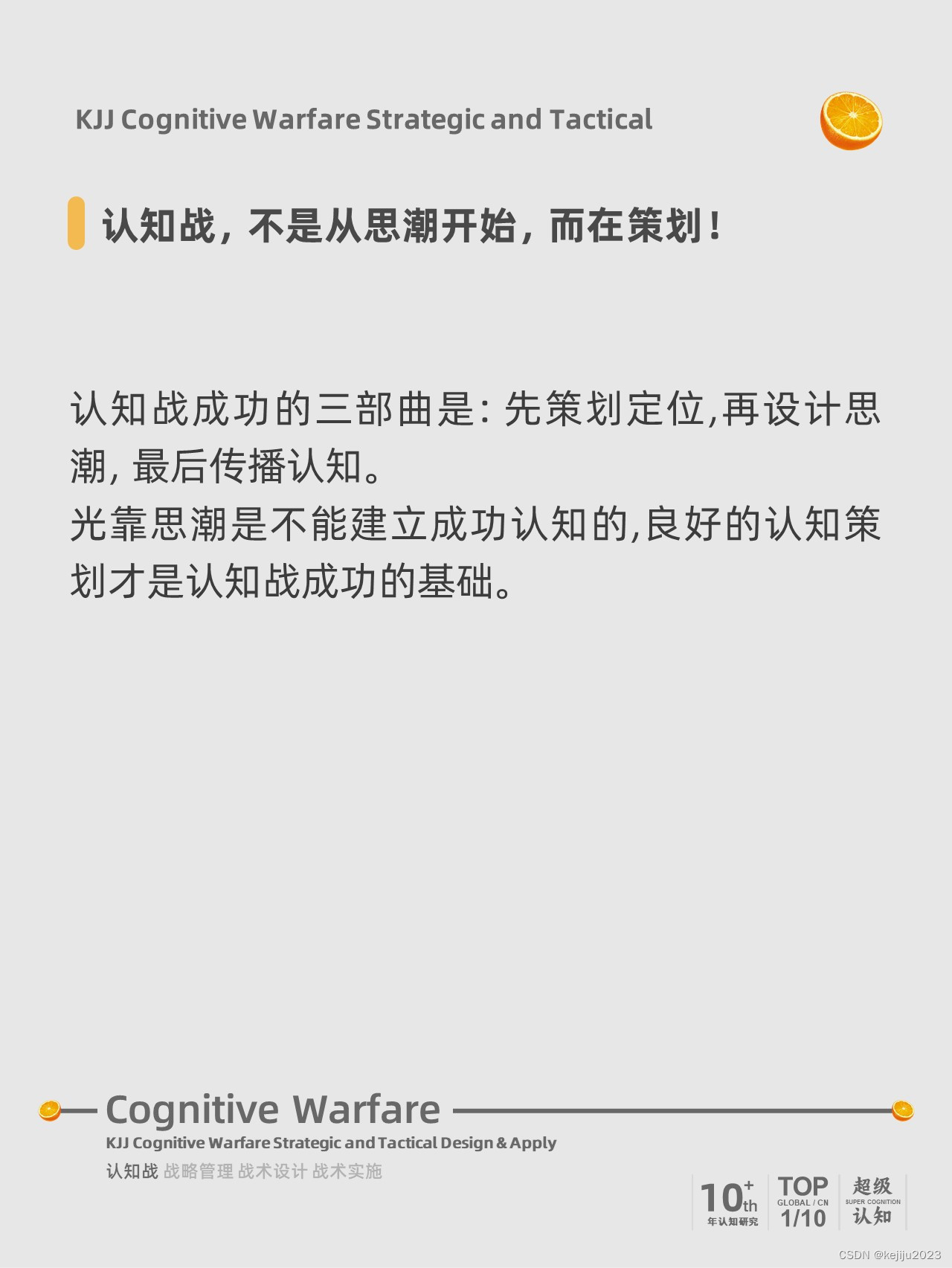 认知战成功的三部曲是:先策划定位,再设计思潮,最后传播认知。