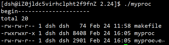 int main() { printf("begin---------------------\n"); execl("/usr/bin/ls", "ls", "-l", NULL); printf("end-----------------------\n"); return 0; }