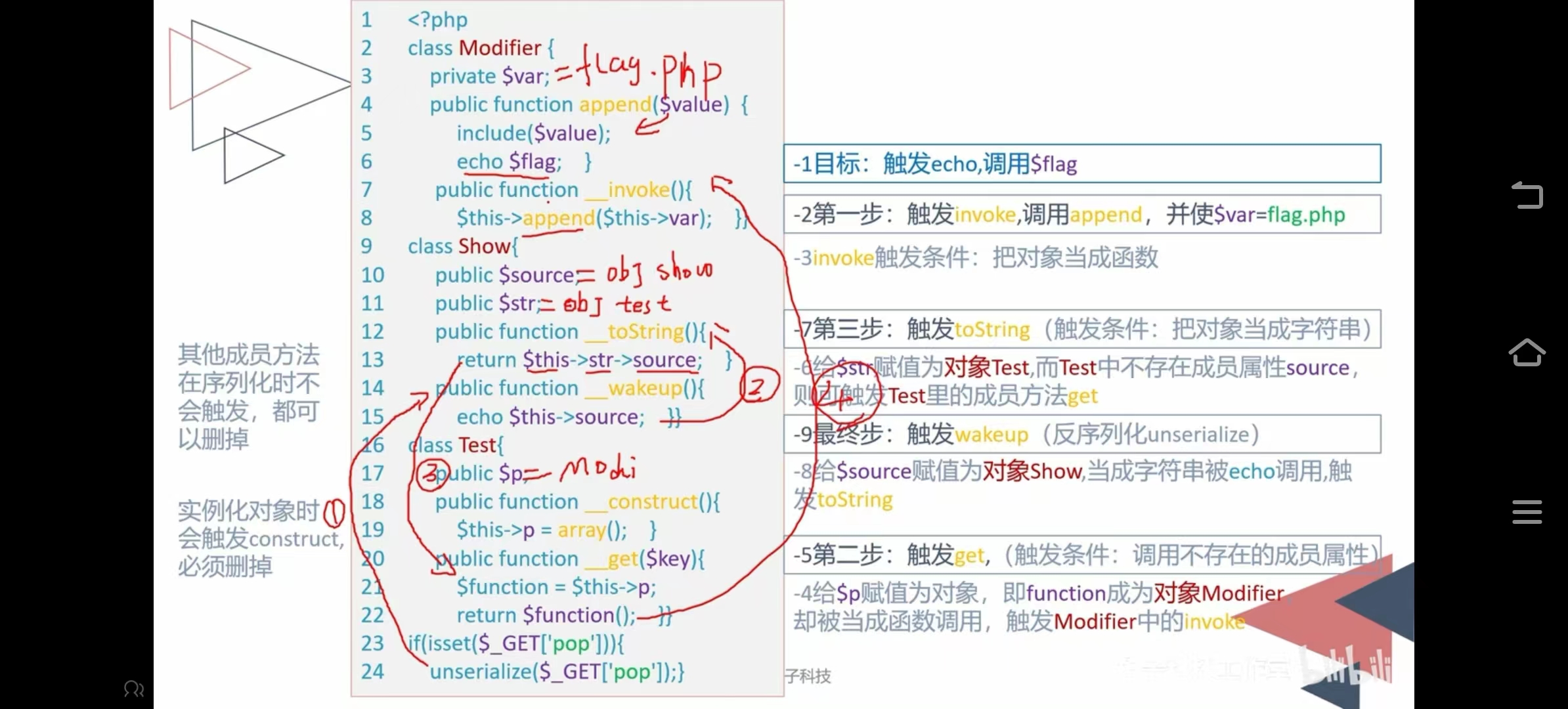 第二步:触发_invoke函数调用appeng函数$var=flag.php(把对象当成函数)