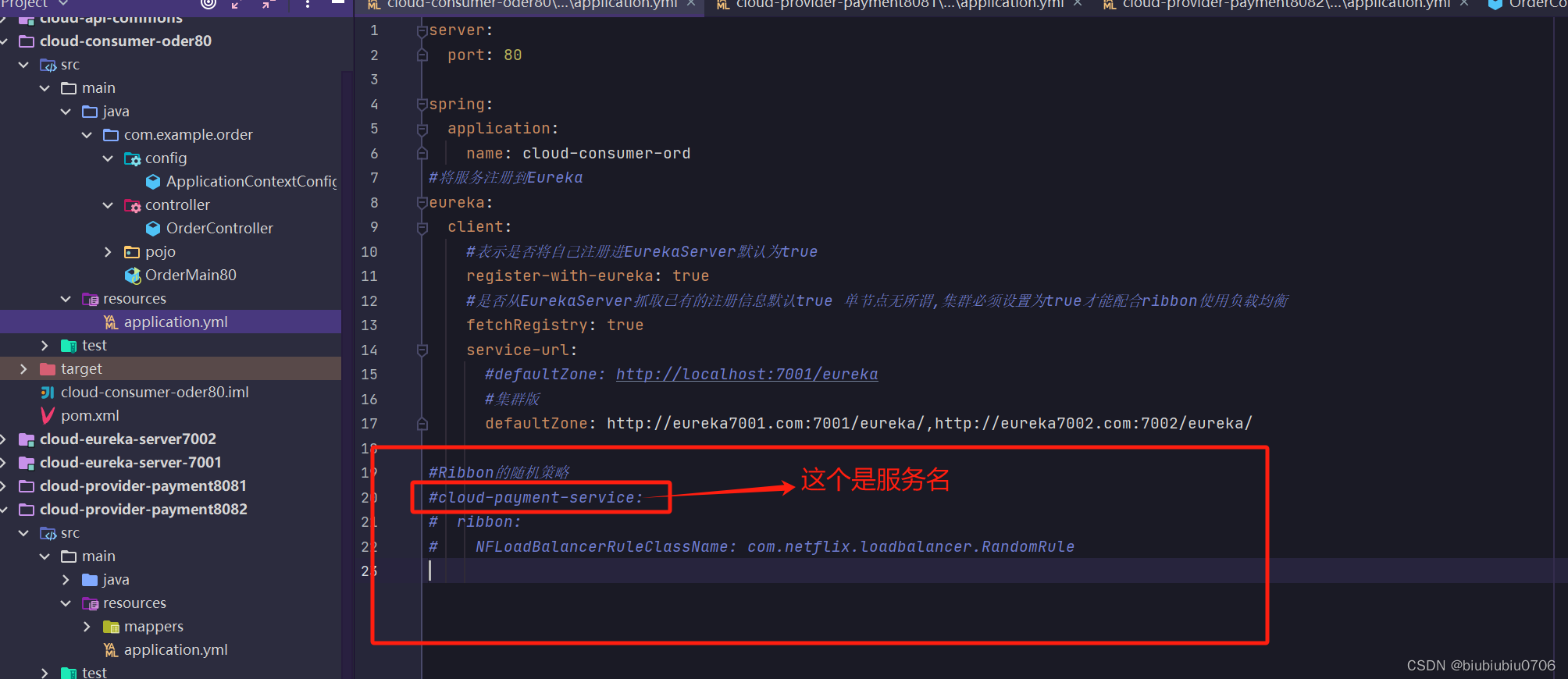 Ribbon和Eureka整合后Consumer可以直接调用服务而不用再关心地址和端口号,且该服务还有负载功能.
