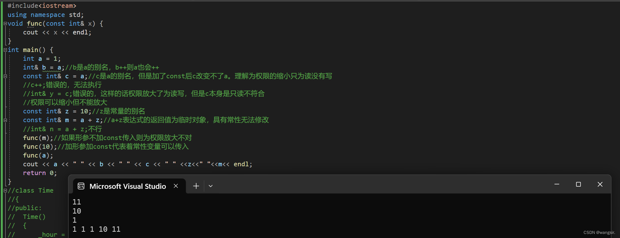- const int& z = 10;//z是常量的别名