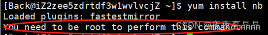 我们想来下载一下软件,我们输入一下 yum install nb ,现在我们来看一下操作系统给我们的提示