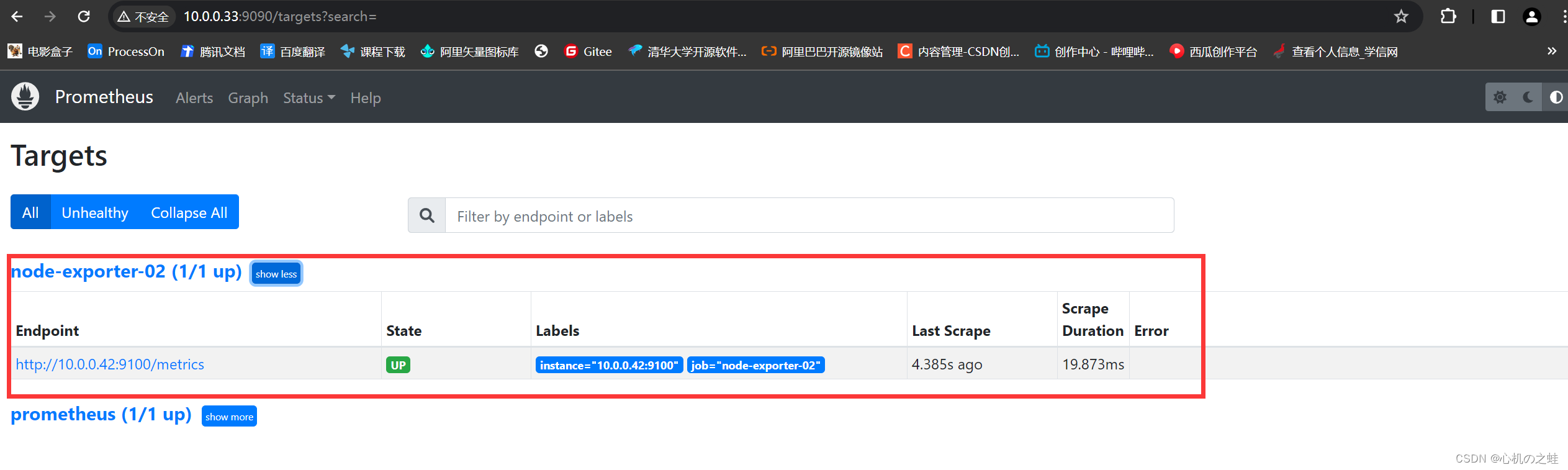 注意,prometheus主节点,取得是:prometheus子节点的数据;