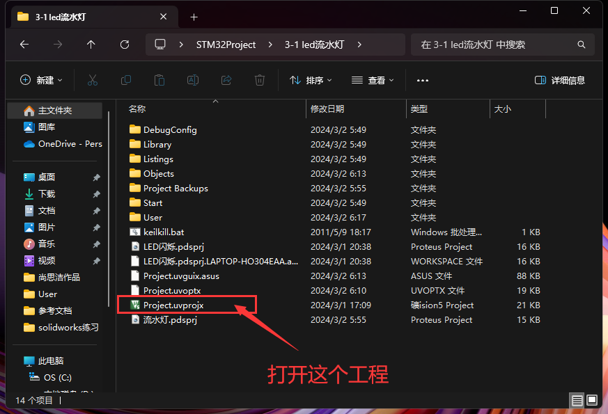 解压后打开keil和流水灯.pdsprj工程:
