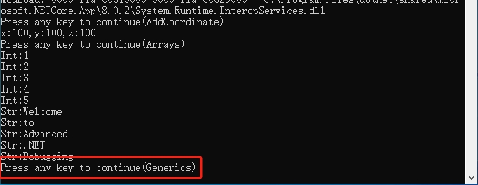39             Console.WriteLine("Press any key to continue(Generics)");