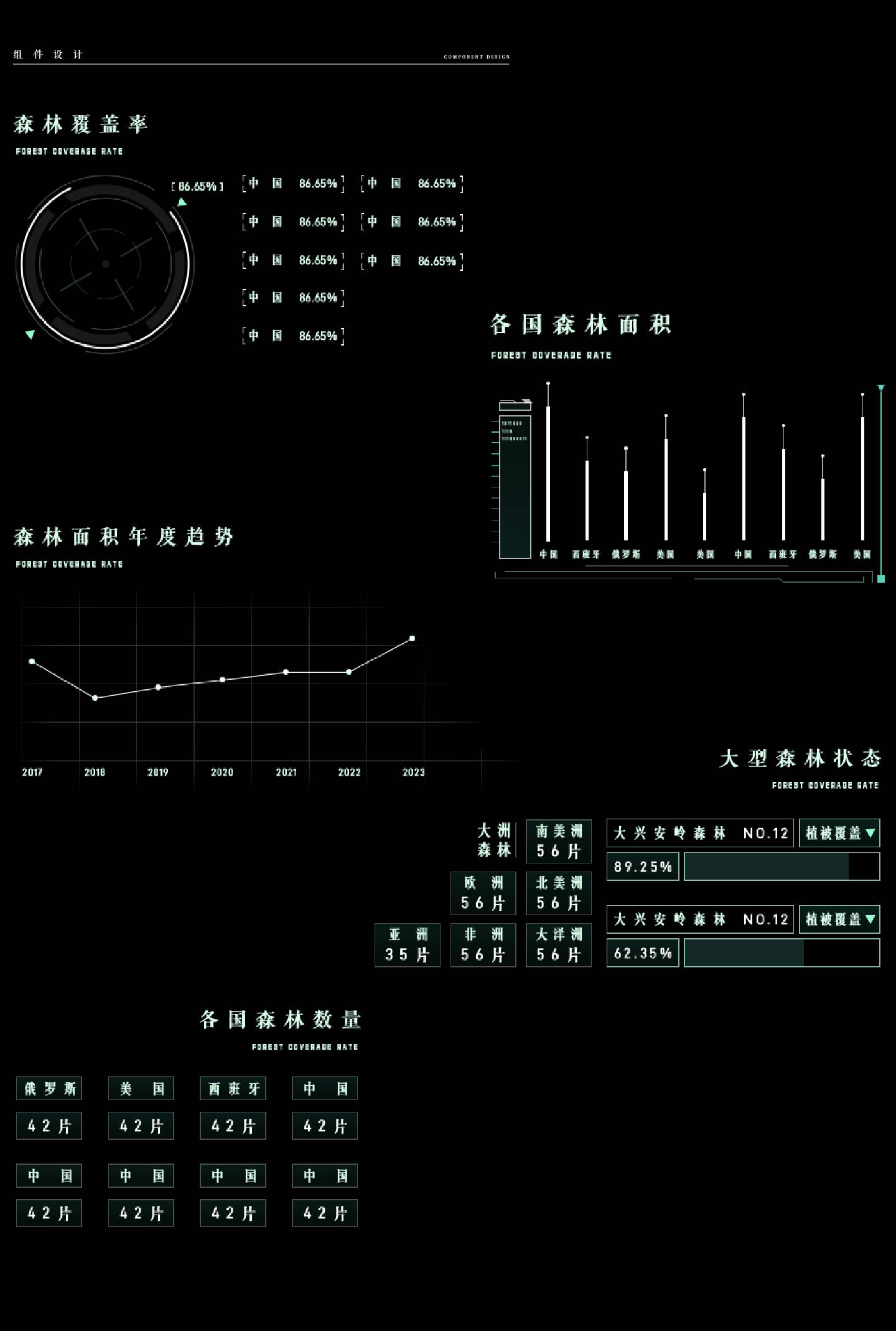 首先,我会整理看板想要展示的数据。林业管理涉及众多方面,包括林木生长情况、病虫害监测、资源利用等。因此必须先将数据进行分类整理,确定需要展示的关键指标和数据类型。这有助于我更好地选择图表类型和设计布局,使得看板能够直观地反映出林业管理的核心情况。