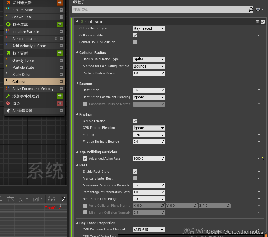 (将碰撞粒子的寿命提前deltatime*“高级老化率”,加上粒子的正常生命周期衰减。)