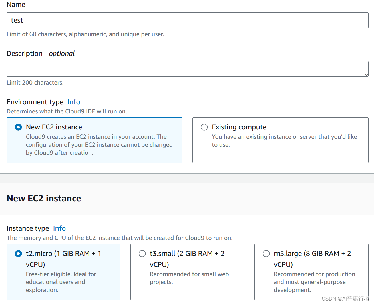 创建Cloud9环境: