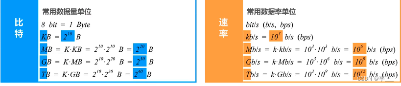 注意区分:数据量上的M:“兆” 和 速率单位上的M:“兆”的大小取值