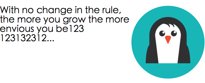 - <p>With no change in the rule, the more you grow the more envious you be...</p>