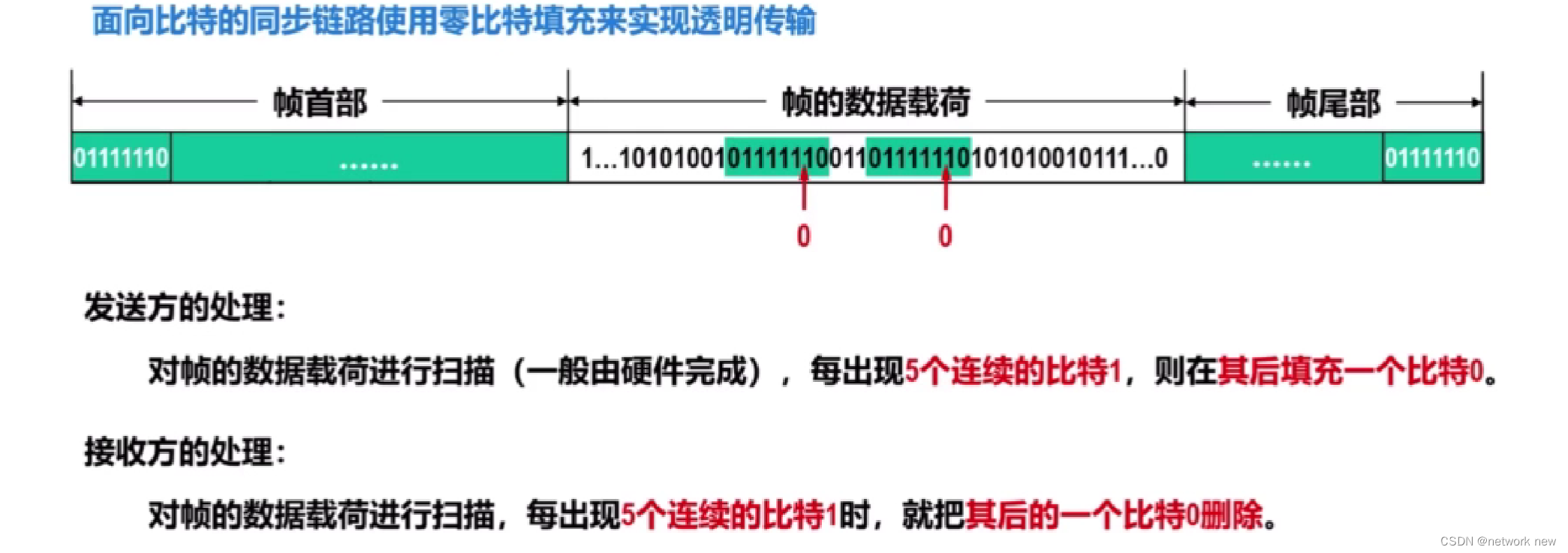 2:面向比特的同步链路使用零比特填充来实现透明传输