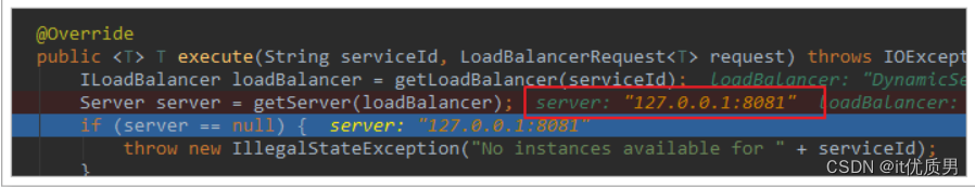 IRule利用内置负载均衡规则,从列表中选择一个,例如localhost:8081
