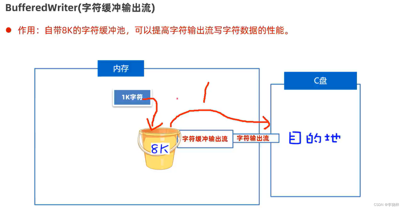 - //而文件字符输出流就优化了这个问题,当创建文件字符输出流时,会在内存中分配一块区域出来,称为缓冲区;
