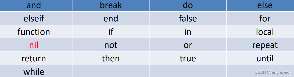 2. 最好不要使用下划线加大写字母的标示符,因为Lua的保留字也是这样的