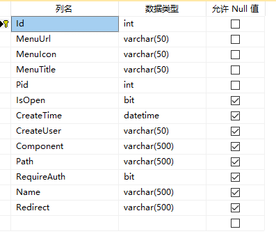 这是我的菜单表结构