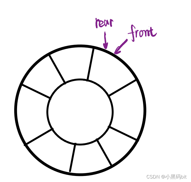 如图我们可以看到,此时rear==front既可以是判空的条件,也可以是判满的条件,那我们应该怎么区分呢?有三种方法://这里的指针变量会和题目中的不太一样,但是判断逻辑相同