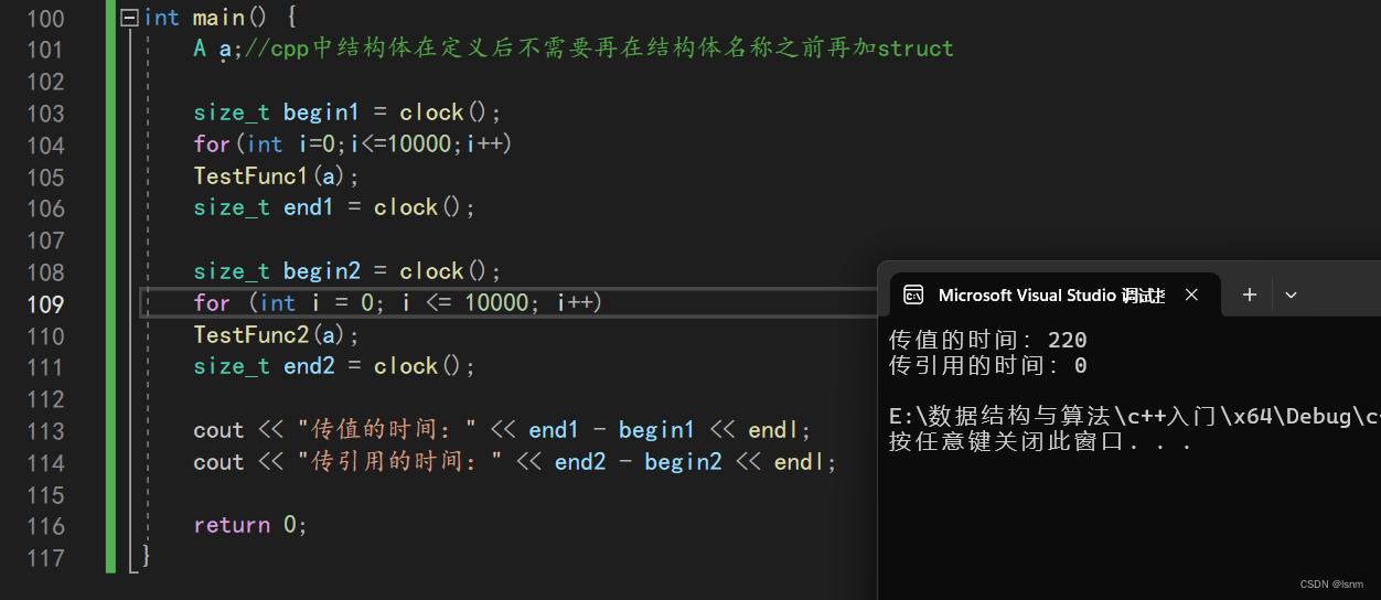 (将传值执行10000次,再将传引用执行10000次,0表示其所消耗的时间是小于1ms的)