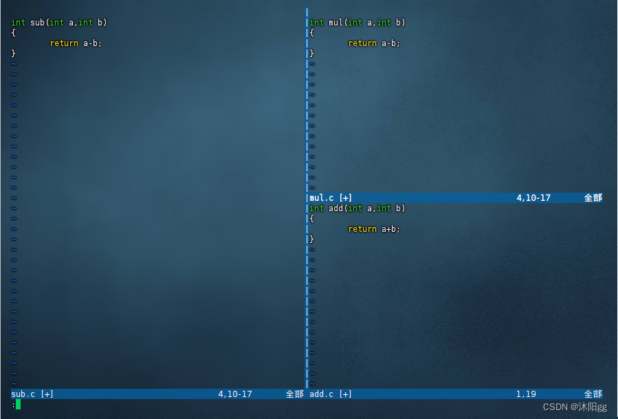 通过vim创建3个文件,add.c、sub.c、mul.c。