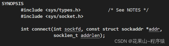 - int connect(int sockfd, const struct sockaddr *addr, socklen_t addrlen);