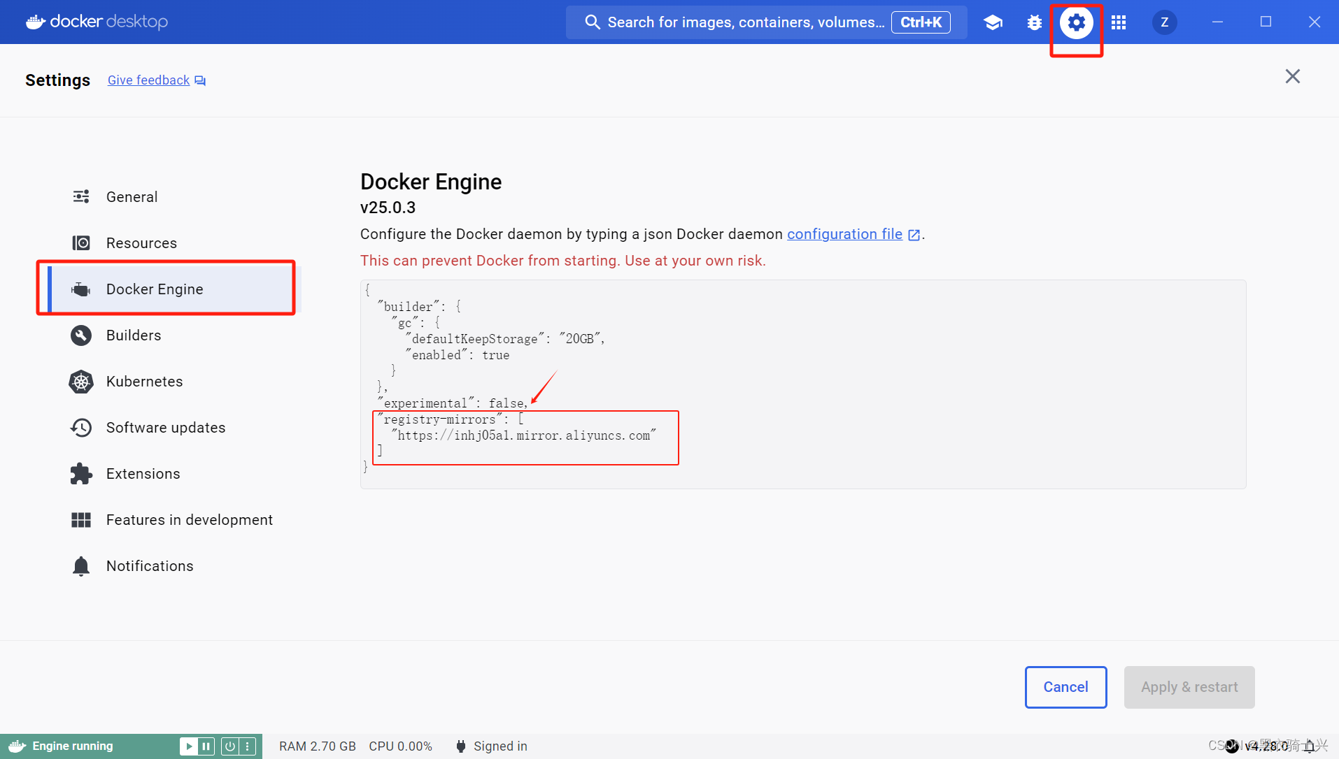 - "registry-mirrors": ["https://inhj05a1.mirror.aliyuncs.com"]