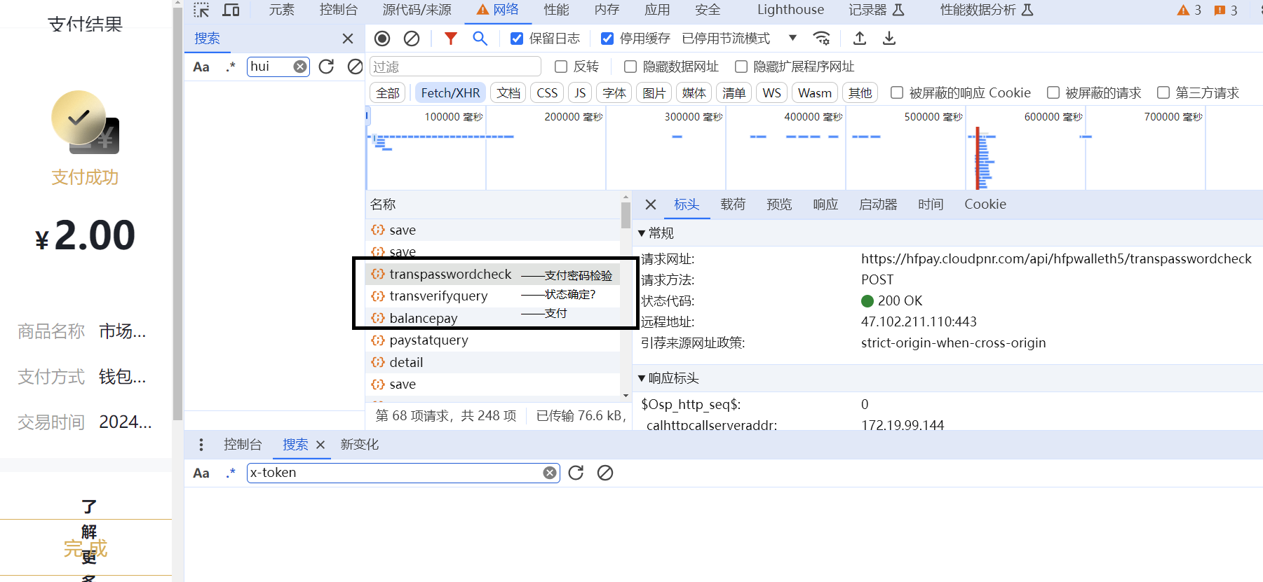在该步骤打上断点之后,再次手动进行支付,以支付密码检验请求为例