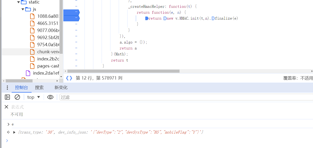 跟栈进入,发现所采用的为hmac_sha256算法加密,通过控制台输出本次的加密结果进行后续验证