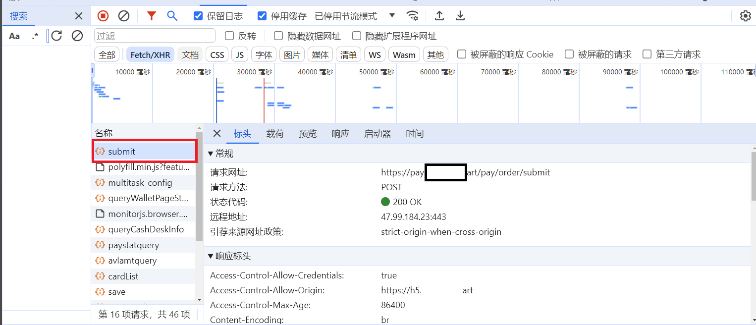 通过手动支付,记录该过程中出现的各请求,经过测试发现必要请求如下: