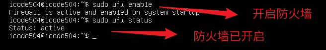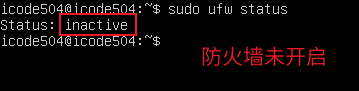 8. 在Ubuntu命令行中查看防火墙状态,在命令行中输入如下命令: