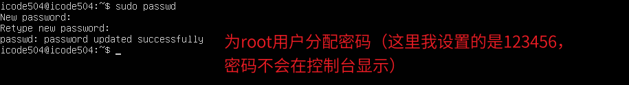 此时会输入两次密码(不会在控制台显示)。为了方便记忆,我将root密码设置成123456: