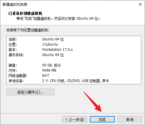 13. 最大磁盘大小建议设置在20GB及以上,这里我设置了50GB,磁盘分配按照默认勾选即可。完成后点击下一步: