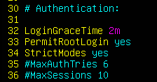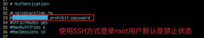此时我们在33行可以看到如下信息PermitRootLogin prohibit-password