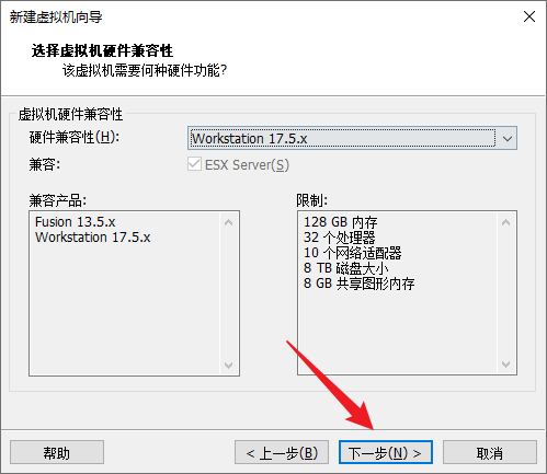 5. 客户机操作系统选择Linux,版本选择Ubuntu 64位,完成后点击下一步:
