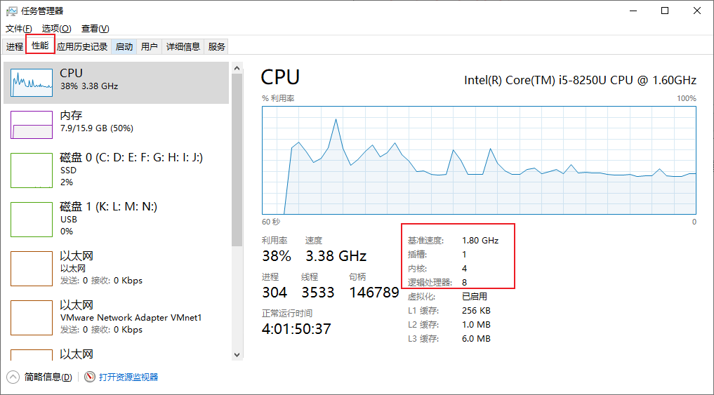 如何检查电脑本机的CPU信息:按CtrlShiftEsc,打开任务管理器,找到性能,即可查看到CPU信息: