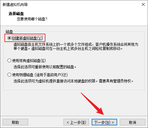 11. 虚拟磁盘类型按照默认选择即可,完成后点击下一步: